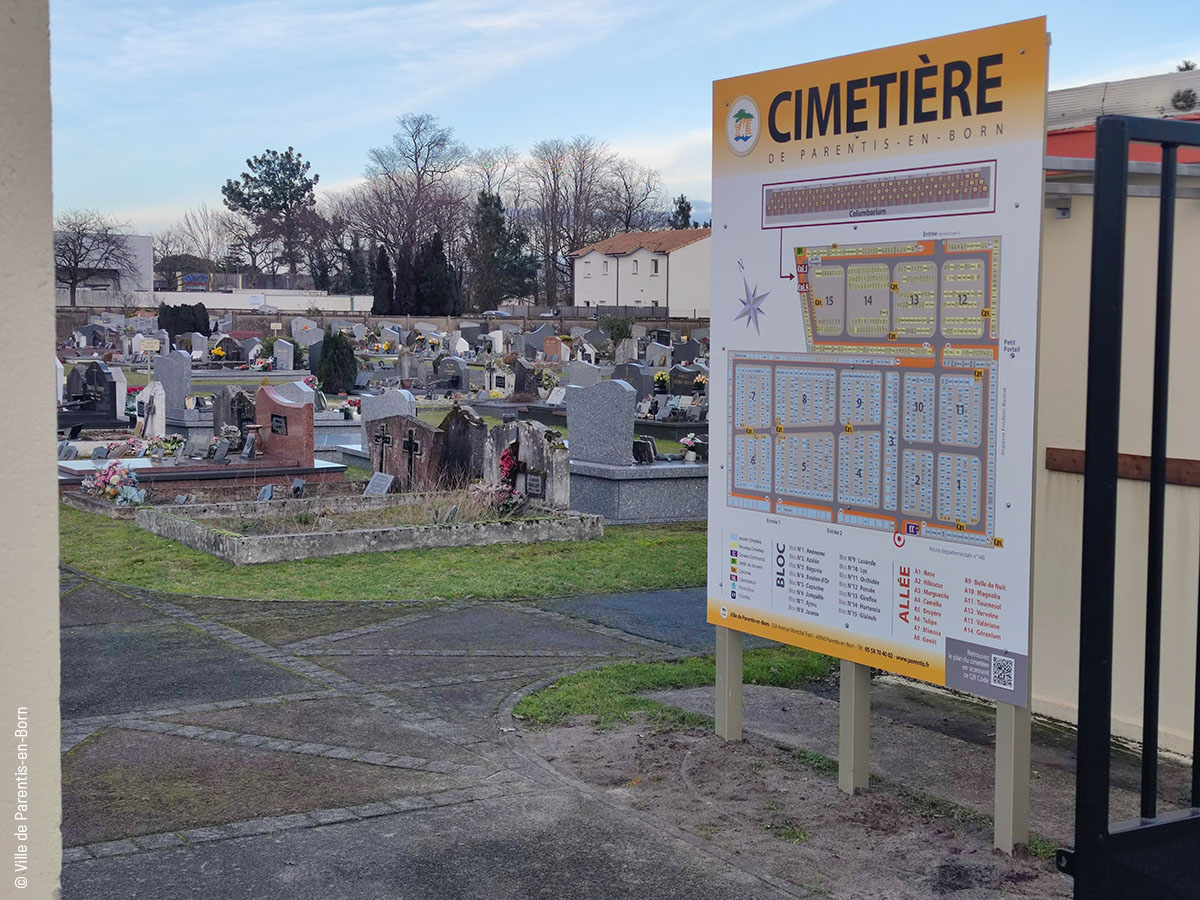 Afin de faciliter les déplacements des visiteurs et le repérage des sépultures, la Ville de Parentis-en-Born a procédé à l’installation d’un plan du cimetière à son entrée principale.