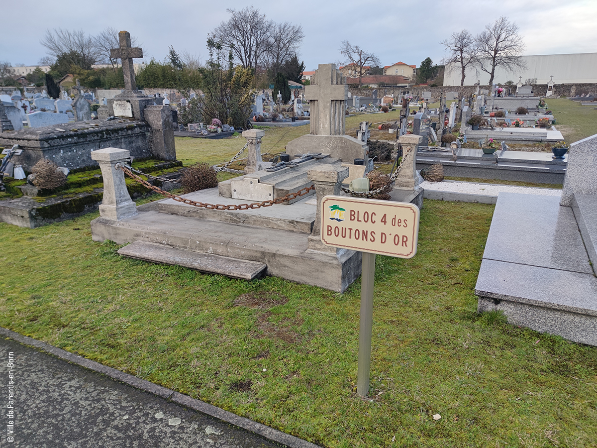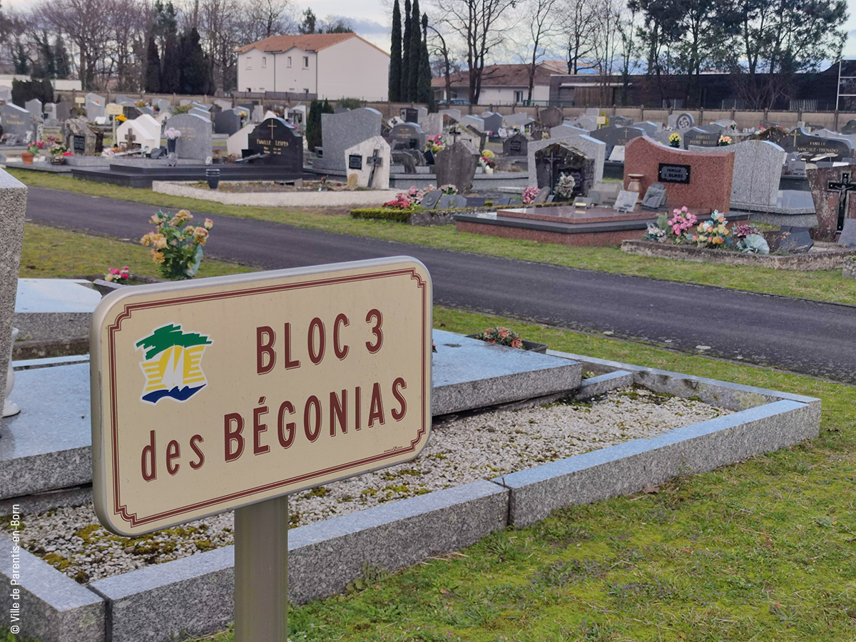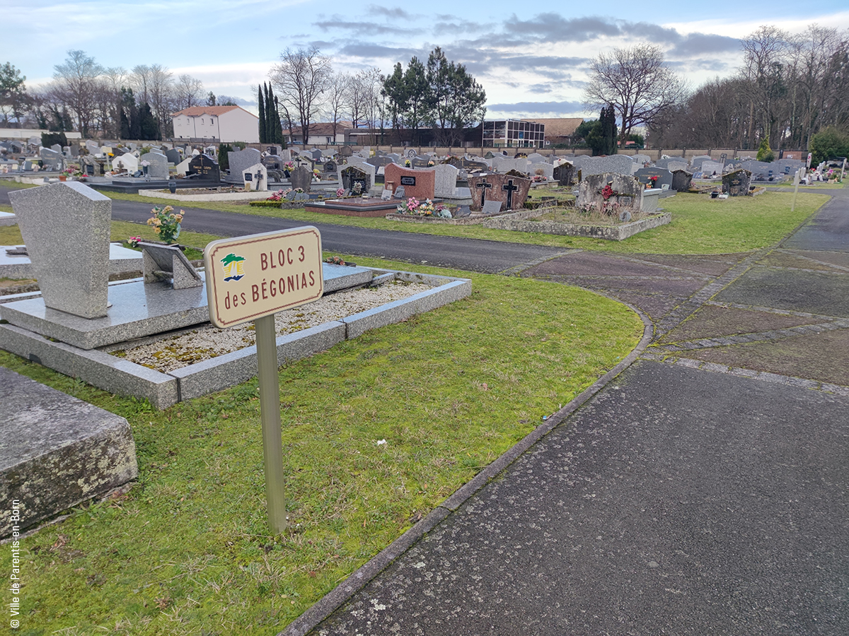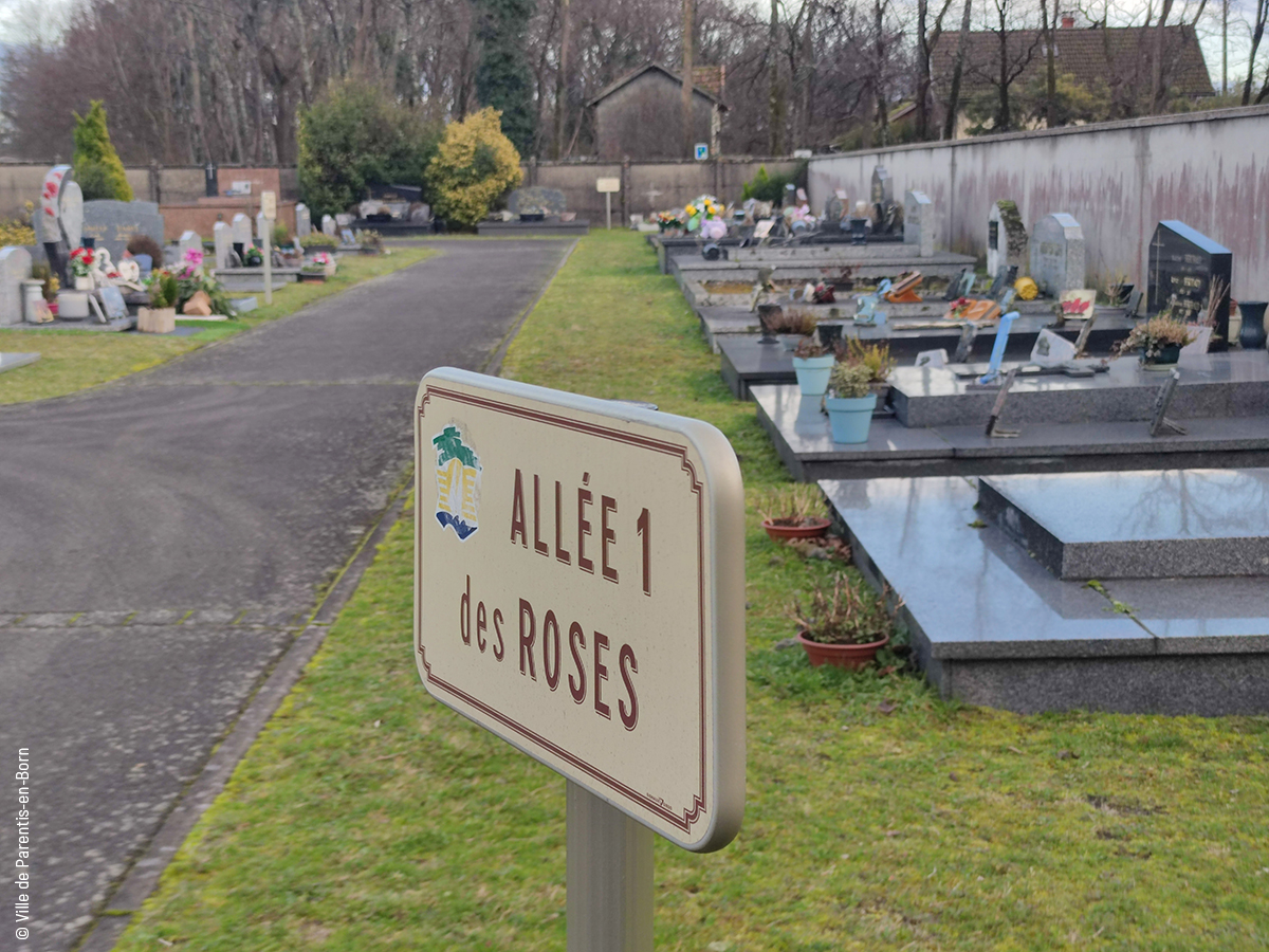 Désormais, les allées du cimetière portent des noms de fleurs, offrant des repères simples et facilement identifiables : allée des Pétunias, des Jacinthes, des Camélias, des Mimosas ou encore des Géraniums. Le cimetière est organisé en 15 blocs, également nommés d’après des fleurs (Azalée, Hortensia, Jasmin…), et 14 allées, clairement indiquées sur le plan.