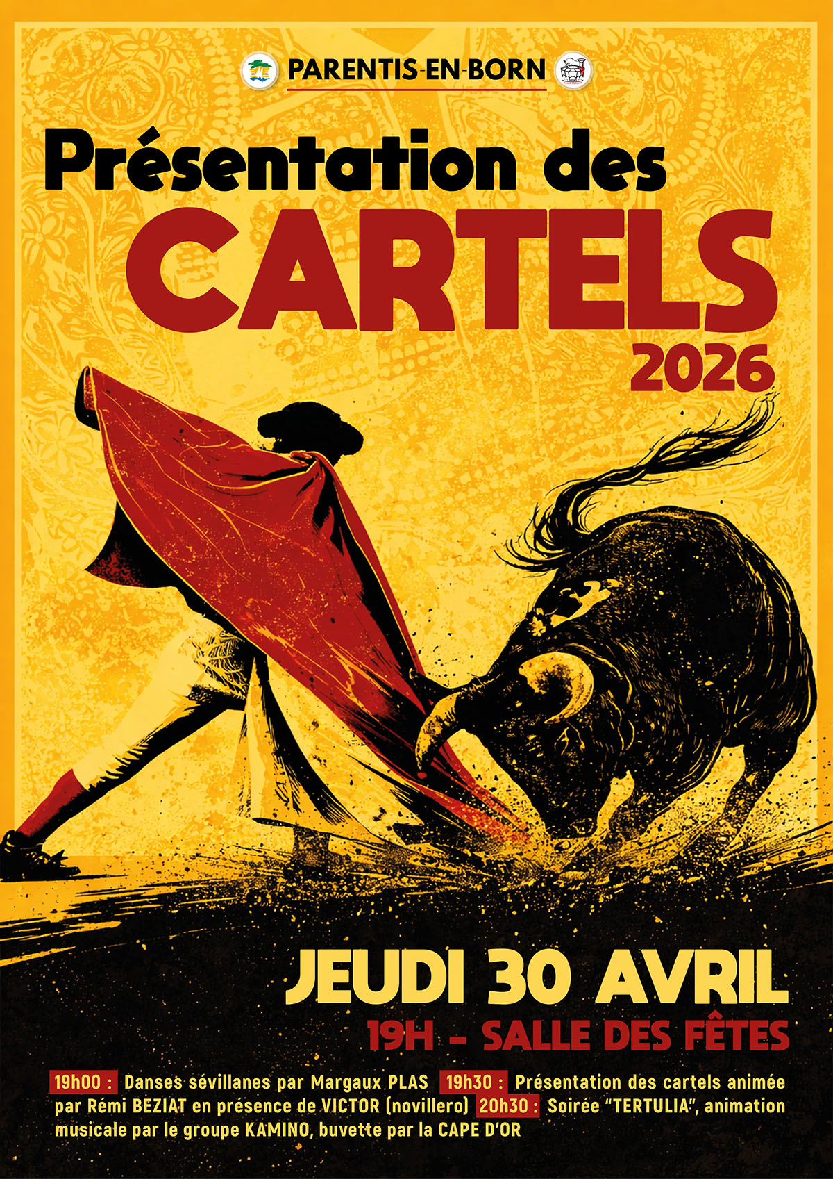 Dans le cadre de la préparation de la Feria Sen Bertomiu 2026, la Ville de Parentis-en-Born organise la traditionnelle soirée de “Présentation des cartels”, un moment clé pour les amateurs de tauromachie. Cet événement, ouvert au public, se tiendra le jeudi 30 avril, à 19h, à la salle des Fêtes.