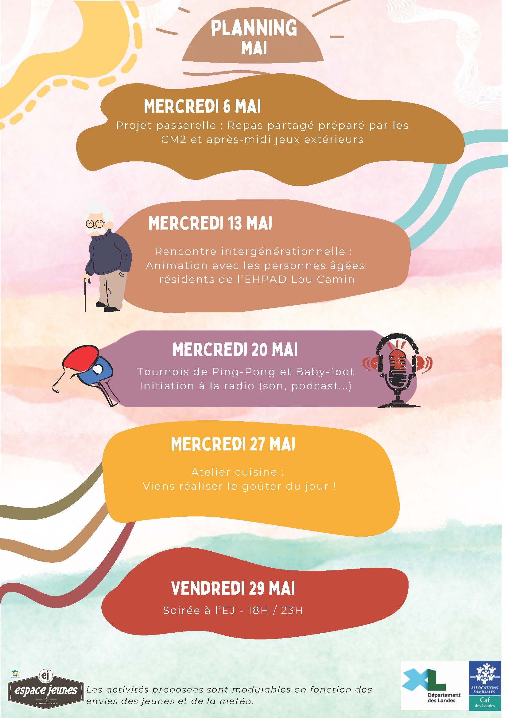 L’Espace Jeunes, c’est tout au long de l’année un accueil de loisirs ouvert pour les adolescents de 11 à 17 ans, à partir du collège, désirant participer à des sorties, des ateliers, des mini-camps, le mercredi ou pendant les vacances scolaires.